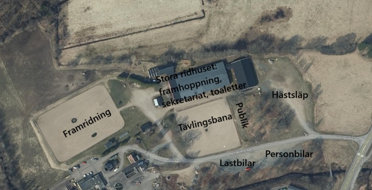 Skiss tävlingsområde vid tävling på övre ridbanan,